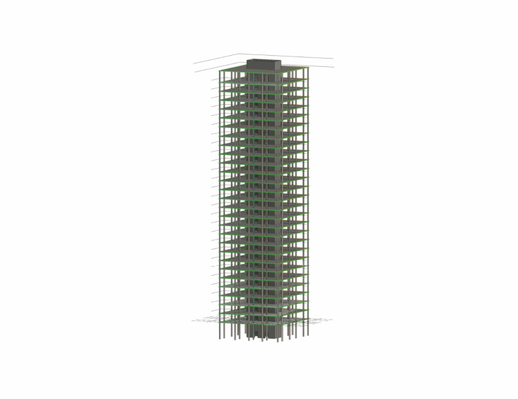 The Salt Tower is a 42-story building (Figure 1) located in downtown Salt Lake City. Since, it is a residential tower, it was decided to use concrete for the structural system to utilize higher inherent damping under wind and service loads. The gravity structural system of the building comprises of concrete post-tensioned slabs supported on concrete columns and a central concrete core. The concrete core at the center of the building, used for elevator and stair, provides the stiffness and strength against the seismic forces. The concrete slabs and the core make up the seismic-force-resisting system of the building. The gravity and the lateral forces are transferred to the ground via a thick concrete mat.